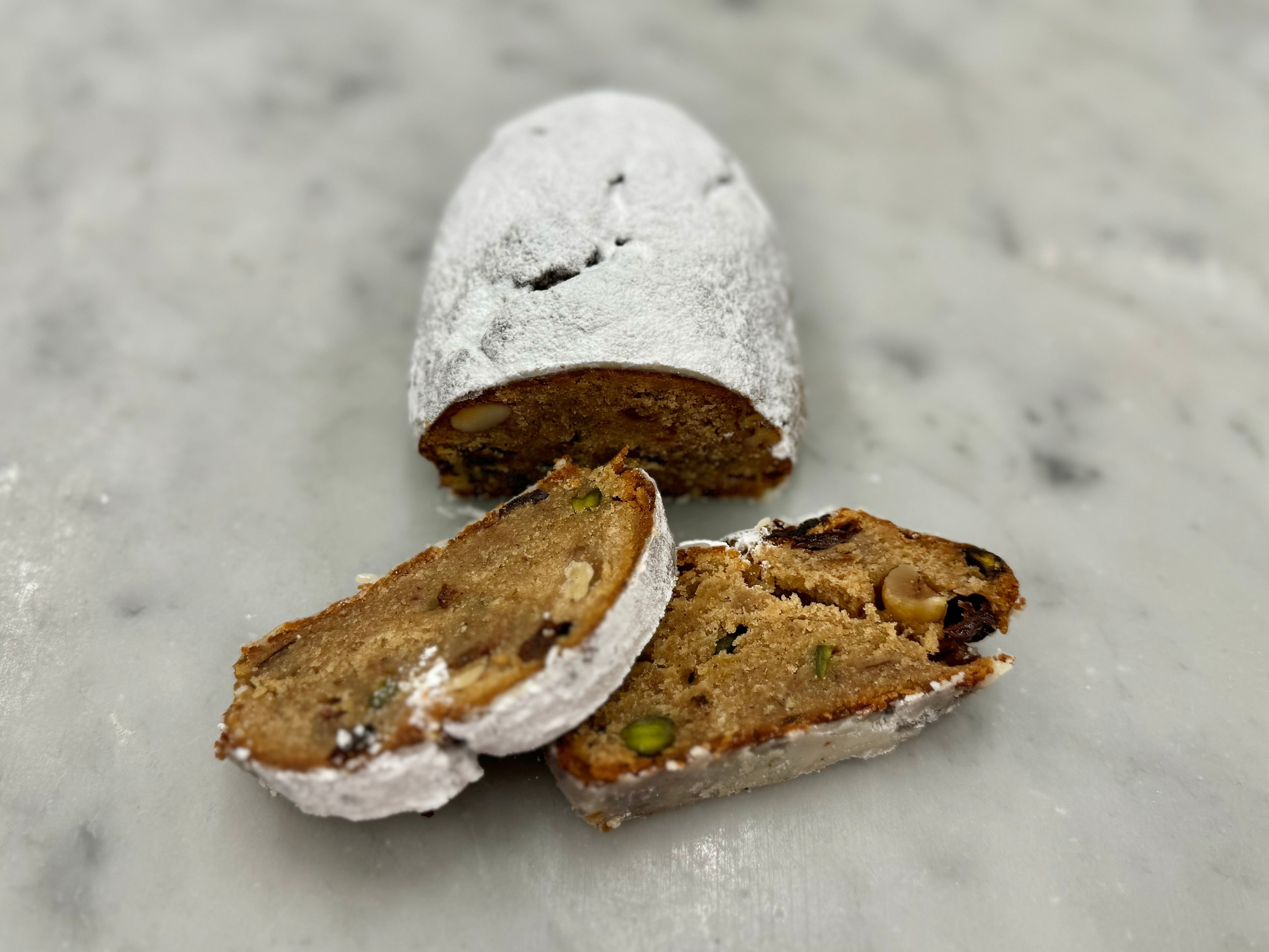 スパイスの香りと香ばしく焼いたローストナッツ、自家製ドライフルーツ、それぞれの素材を活かしたシュトーレン。